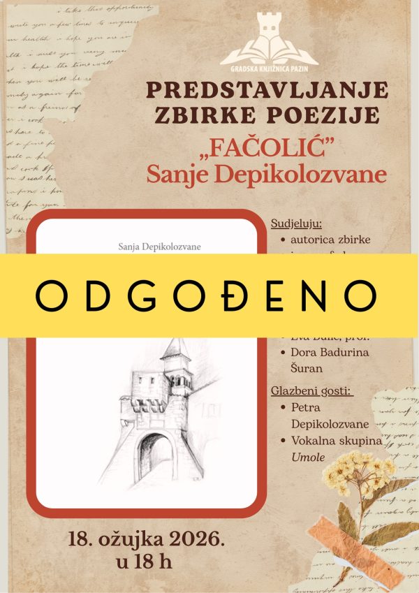 Odgađa se sutrašnje predstavljanje zbirke poezije Sanje Depikolozvane “Fačolić”.